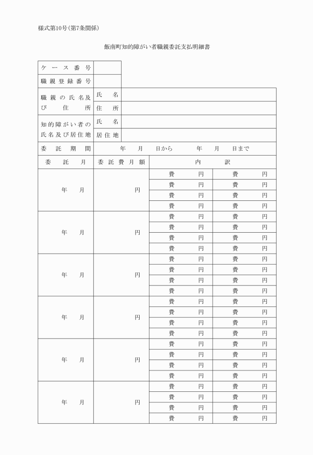 第7条 福祉事務所長は、委託した職親に対し委託費を支払うものとする。ただし、委託費の額は、職親が知的障がい者に対し行う生活指導及び技能習得訓練等の内容を勘案して福祉事務所長が必要と認めた額とする。