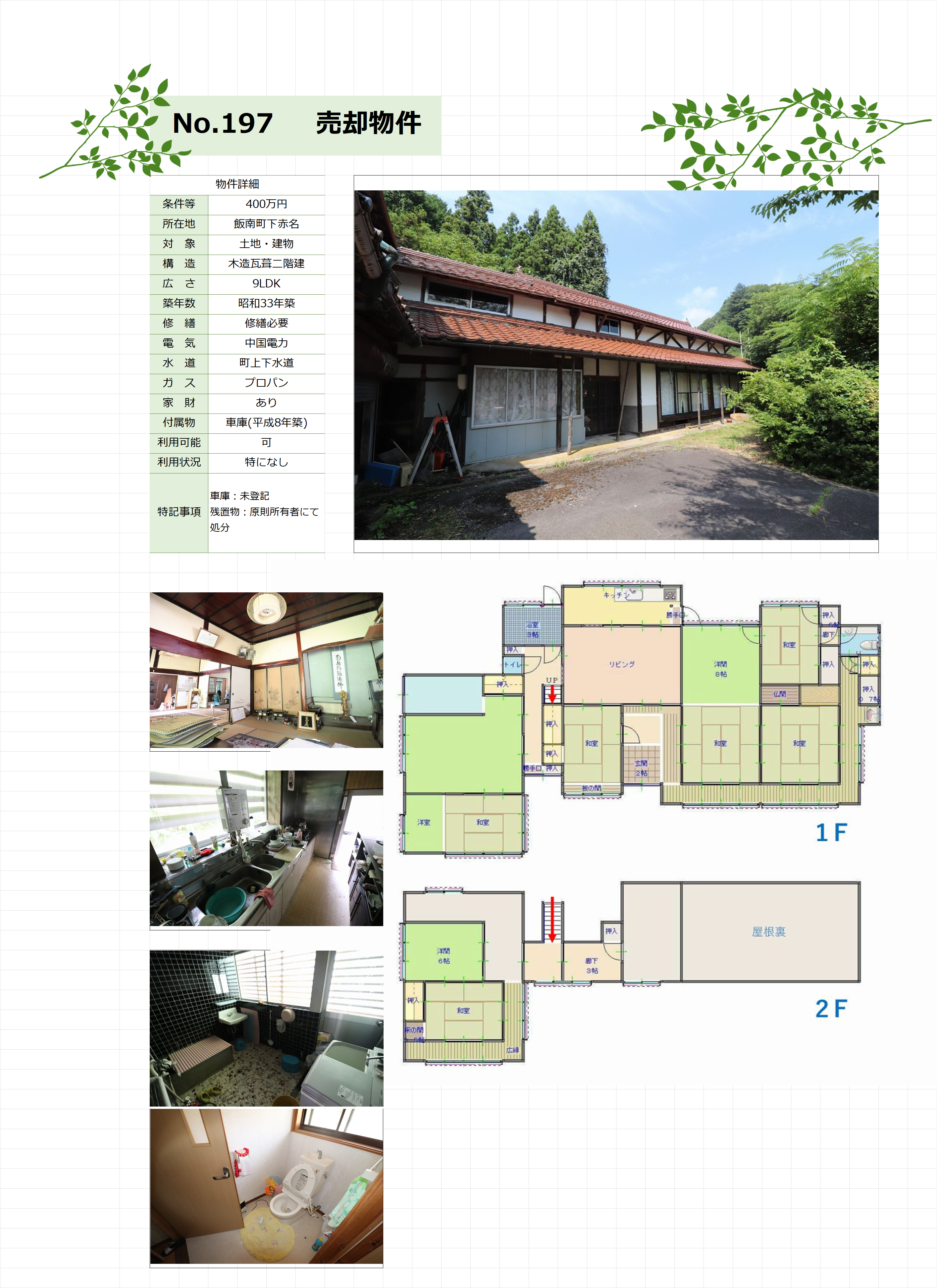 登録物件の中には、家財道具がそのまま残されていたり、修繕をしないと住めない物件も多くあります。あらかじめご了承ください。